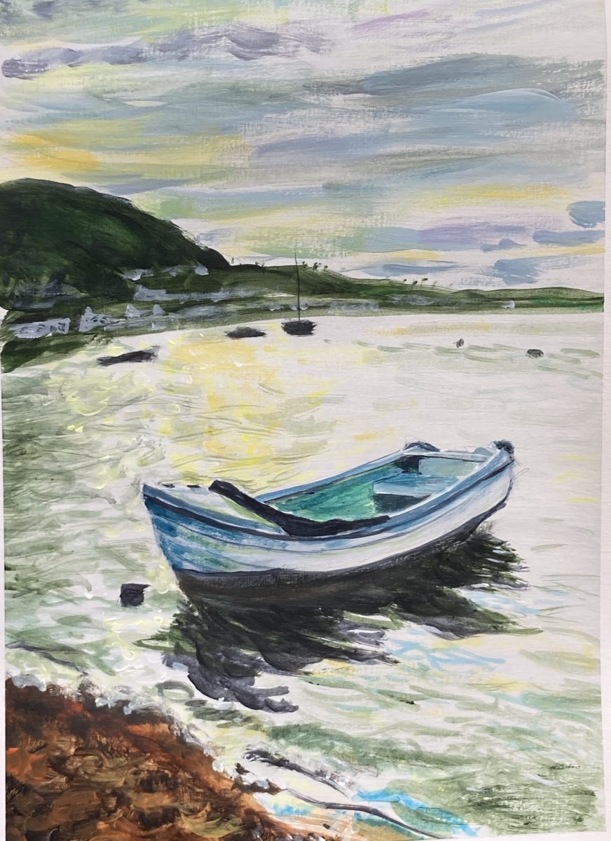 Although I did some drawing at school, it is only recently (as I have moved away from working full time) that I have had the time to reconnect with creating art. Inspired by Devon and Danish colours, landscapes and people, my focus is now the use of colour in painting, and increasingly using mixed media with acrylics, oil crayon and collage in the mix. My topics range across portraits, landscapes, trees and flowers, to provide realism, impressions and abstract images.