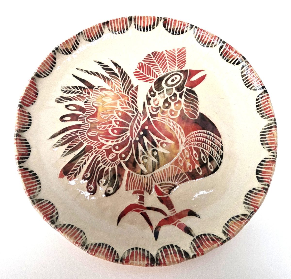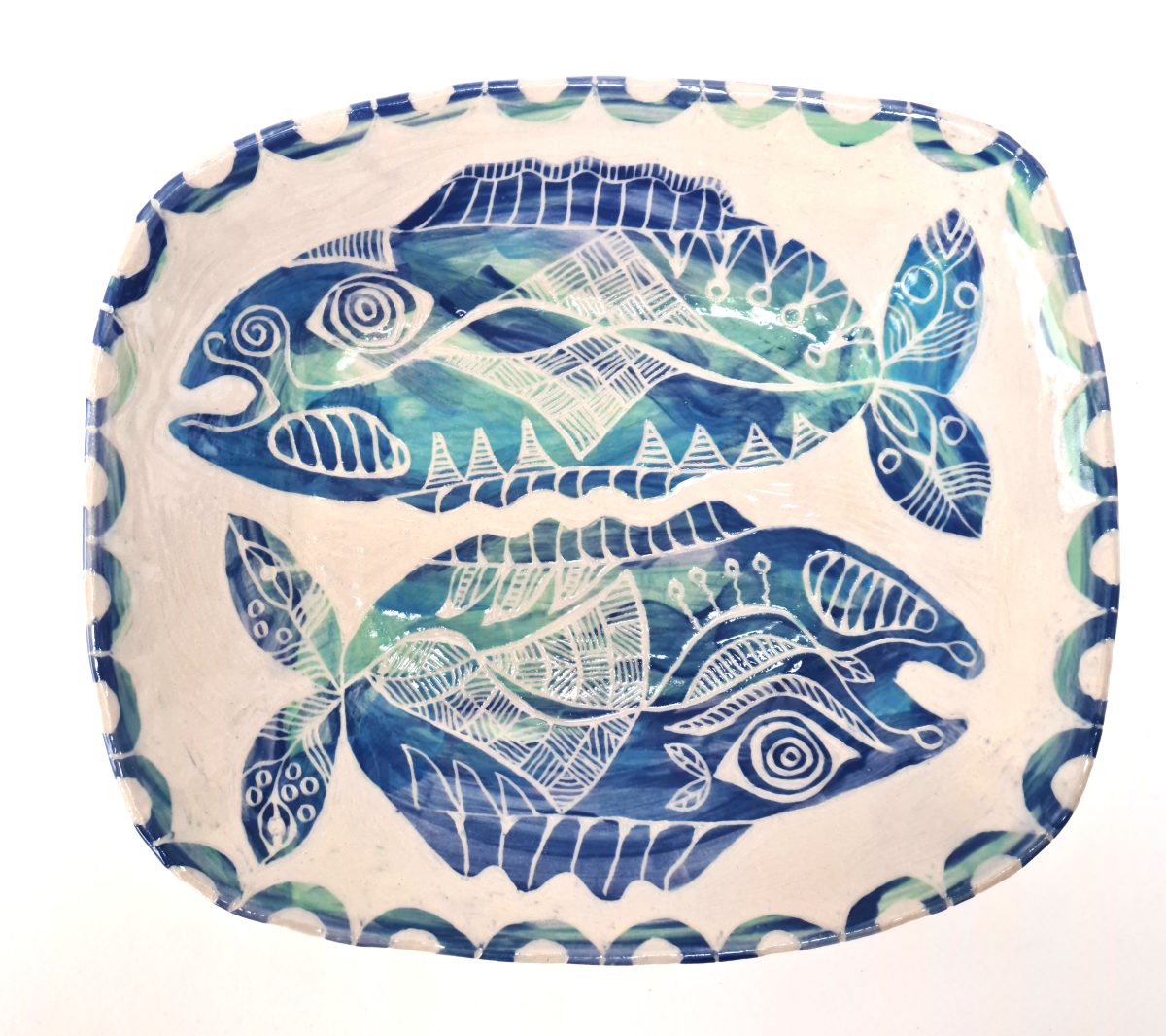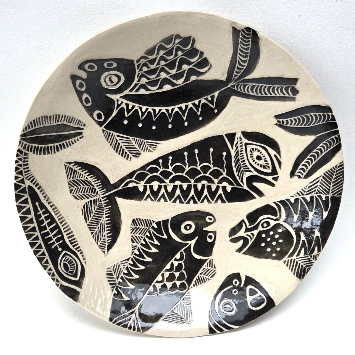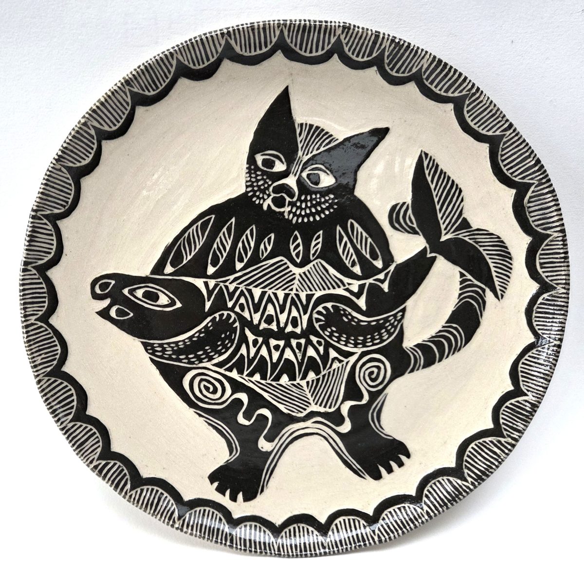 My ceramics are hand formed from cream stoneware clay. I draw onto each piece using a traditional sgraffito technique in a contemporary way.