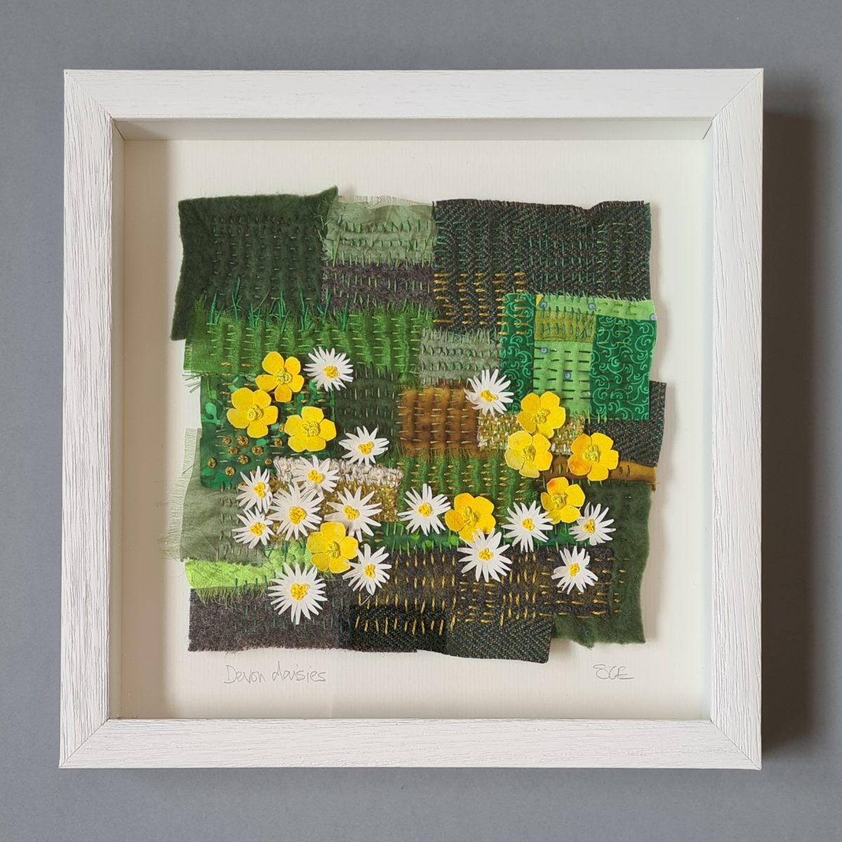 I am continually inspired by the beauty of Devon nature: country hedgerows and dry stone walls; coastal cliffs and rock formations; pebble ridge views. I create stitched, often quite impressionistic art using a variety of threads and fabrics; also layered images using dyes, inks and drawing materials on card and fabric, with further details added through hand and machine stitching. I enjoy the tactile nature of my work, and in addition to wall-art, work in 3D to create small bowls, cushions and brooches inspired by flowers, hedgerows and the colours and textures of the natural world.