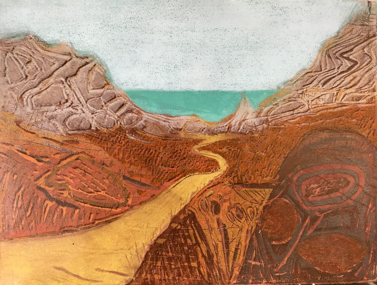 Steph is excited about the contribution of art to our state of well being, having experienced this on a personal level and, from observing its positive benefits on groups in the community in her previous health role. Working from home in her garden studio, Steph juggles her practice with caring for close family members who have health needs. She is a friend’s member of Double Elephant Printmaking Studio where she has recently been expanding her practice using painterly woodcut techniques. She is a member of the Topsham Art group and Crows Women’s Artist group.