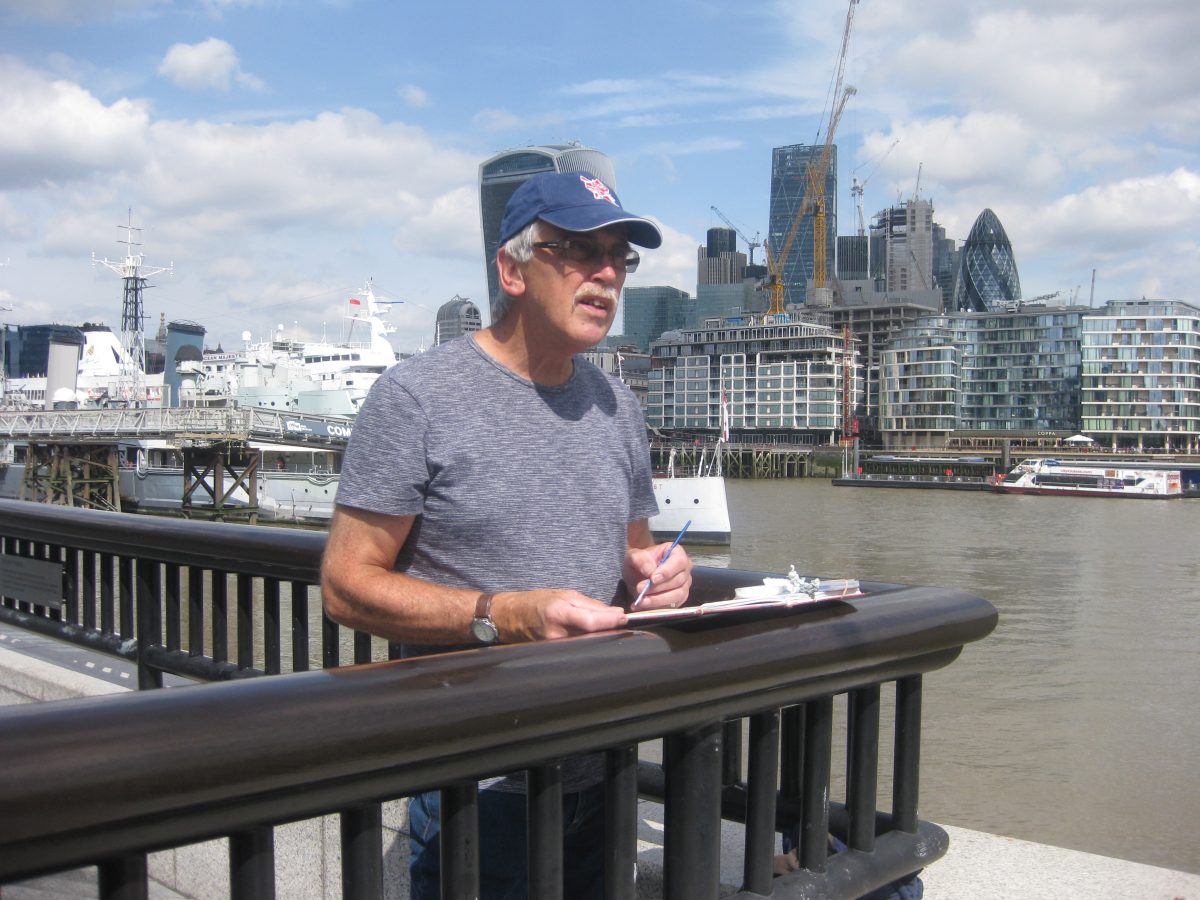 Exhibitions include The Royal Albert Memorial Museum and Art Gallery, Exeter; The Royal Society of Marine Artists and Royal Institute of Oil Painters at The Mall Galleries, London; The Penwith, St Ives; Falmouth Art Gallery, The Brownston Gallery; Modbury; The Vandlys Gallerie Exeter; The Steam Gallery Beer; and The Royal West of England Academy, Bristol. He is an honorary member of The South West Academy of Fine and Applied Arts (SWAc) and previous Chair, he is an exhibiting member of The National Acrylic Painters Association (NAPA), he also continues as The President of Otter Vale Art Society (OVAS) and Vice President of Budleigh Art Club. He was awarded The Adrian Henrie Prize by The National Association of Painters in Acrylic at their Annual Exhibition and also The Dartmoor Magazine Prize for the best entry into The Greenhill Arts Open Exhibition in 2024. He exhibited at The Mall Galleries in The Royal Institute of Oil Painters in 2024 and The Royal Institute of Painters in Watercolour in 2025. Phil’s painting explores the landscapes and seascapes of the southwest of England. He often paints en plein air, on the beach or in the landscape, Phil also undertakes his gouache and larger acrylic paintings in his recently converted home studio. Phil can be contacted by email at